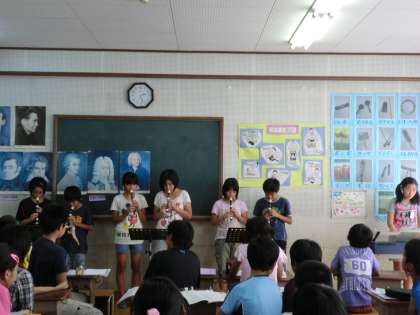 子どもたちからは,「いつもだったら,誰かに合わせて吹いているけど,自分が吹かなかったら音がなくなるので大変だった」「一人一人の責任感が増したけど,やりがいはあった。」などの感想がありました。