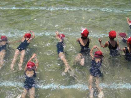 今日は,後半に,どのくらい泳げるのか検定しました。がんばって泳いでいました。だいたい10メートルぐらい泳いでいました。夏休みにも,プールでの指導がありますので,どうぞ参加してください。