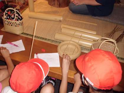 まずは,竹工芸です。1本のひごから,かばんや箱がつくられていました。