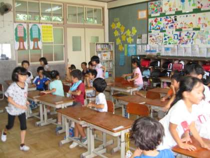 最後の日,少し時間が余ったのでミニお楽しみ会をしました。「なんでもバスケット」をしました。久しぶりにしましたが,ルールも覚えていてみんなで楽しむことができました。短時間でしたが,楽しい時間をもててよかったです。