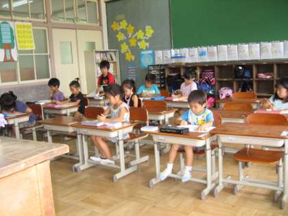 三日目のサマースクールがありました。今日で終わりです。今日もたくさんの子ども達がやってきて,プリントでの復習や図書の本を借りかえたりしました。