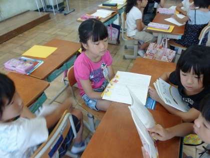 国語では,グループ4人組での交流活動もしています。自分が見つけた発見を友達と交流し合い,友達の意見と自分の意見を比べる学習です。「こんな意見もあるんだね!」と自分と違った意見を聞いて,また自分の考えを深めることができてきました。