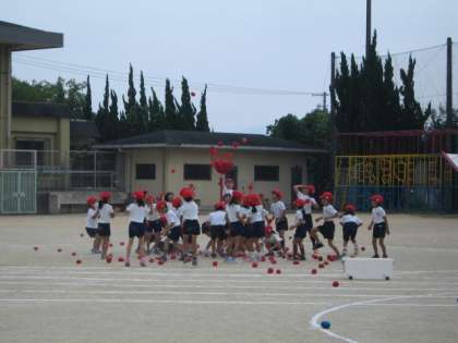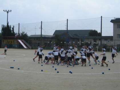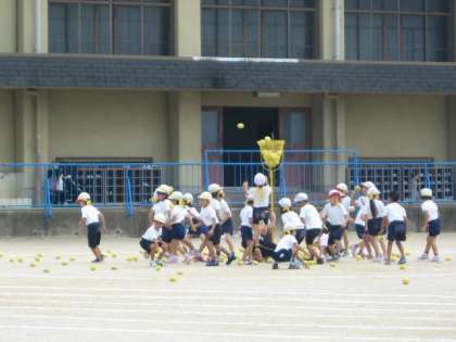 体育では,初めて玉入れの練習をしました。実際に玉を入れました。かごの高さが低いので,短い時間でもたくさん入りました。本番は,もっと高くしたいと思います。「ああ,楽しかった。」とにこにこ顔の子ども達でした。来週は入場のダンスから練習します。