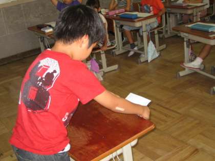 ところで,子ども達は測った結果,机は出入り口から出ないということになりました。でも,ちゃんと出すことができました。びっくりしていた子ども達でした。