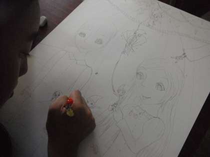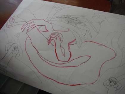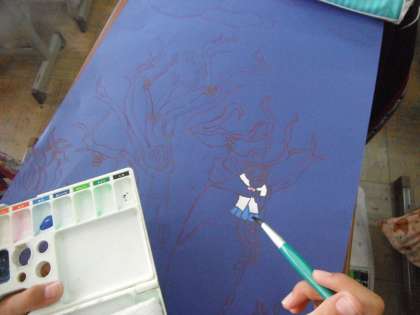 どのお話も夢があります。子どもたちは、楽しんで自分の世界をつくり表現しています。今は、下絵の段階です。