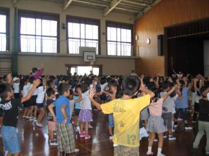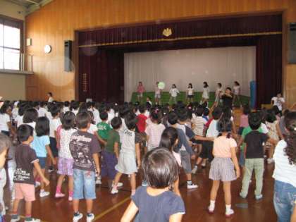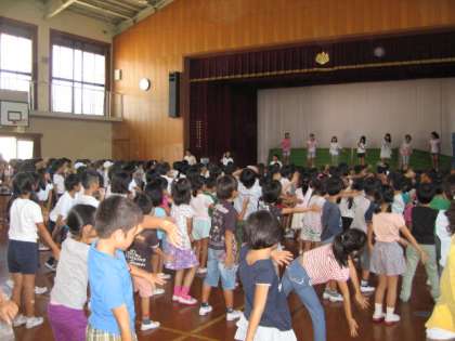 今日の中間休みは,低学年のダンス練習でした。2回目の練習です。覚えがよくて,もう上手に踊ることができます。子ども達もダンスが大好きで,のりのりで踊っています。