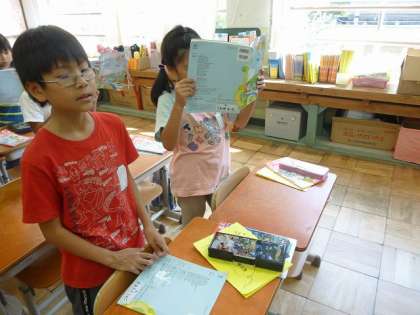 「虫の声」の歌を歌いました。歌うときには,音をよく聞いて,きれいな声で歌うことをめあてに練習しました。よく音を聞いて歌うと,とてもきれいな声で歌うことができました。けんばんハーモニカでは,「たのしいたいこ」をリズムよく練習しました。友だちの演奏を聞きあうと,きれいな音が聞こえてきて,「上手になってきたね!」と話し合いました。お互いのいいところを聞きあって,どんどん上手になっていきたいと思います。