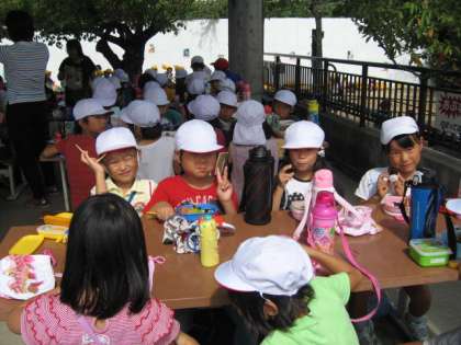 11時ごろから「先生,おなか空いたあ。」「いつお弁当食べるの?」と言っていた子ども達。動物園のなかを歩きまわっておなかが空いたのでしょう。お弁当の時間もじゅうぶんとれたので,給食の代わりにもっていったおやつもたくさん食べていた子ども達です。心のこもったお弁当を朝早くから作ってくださってありがとうございました。