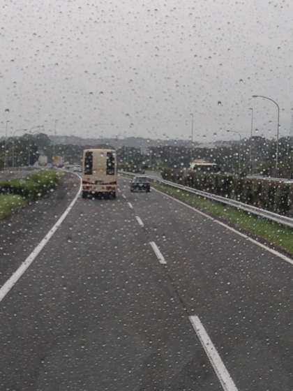 雨が降っていますが,バスは順調に進んでいます。もうすぐサービスエリアでトイレ休憩です。