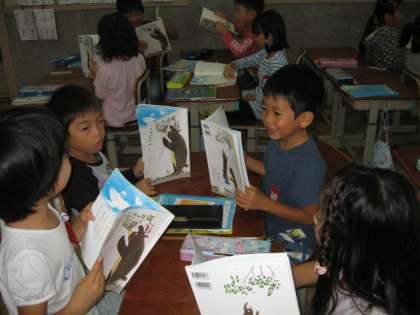 「くじらぐも」を学習していますが,今日は「2」の場面をナレーターと子ども達とくじらぐもに分かれて,音読発表会をしました。日頃,お家で音読をがんばっている子ども達なので,役割を決めたら,練習を始めあっという間に発表できる読み方ができるようになりました。本当にすばらしいですね!どのグループも上手でしたよ。