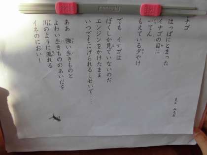 今日の読み声タイムの様子です。今月は「いなご」という詩を読んでいますが,子ども1人1人によって読み方が違って,とても楽しいです。間の開け方や声の強弱のつけ方など工夫がたくさんあります。