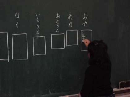 新出漢字の学習をしています。新しい漢字ばかりではなくて,前に学習した漢字の復習をしています。復習の漢字学習では,黒板に漢字を書いてもらうことが多く「やりたい!」と手をあげる子どもが多いです。友だちの書いている書き順やとめ・はらいをみんなでじっくりと見ています。