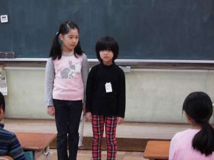 朝の日直さんのスピーチでは,最近のできごとを話しています。友達の方を見て,大きな声でスピーチをしていると,聞いている友達も真剣に聞いています。質問タイムでも,たくさんの質問が出ています。どんどん話をする機会を作って,楽しみながらスピーチをしてほしいを思います。