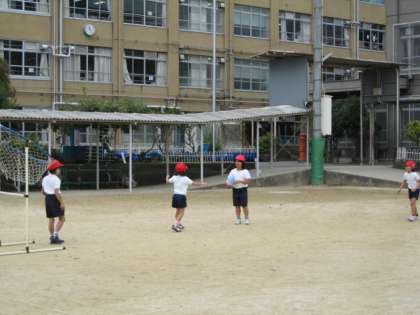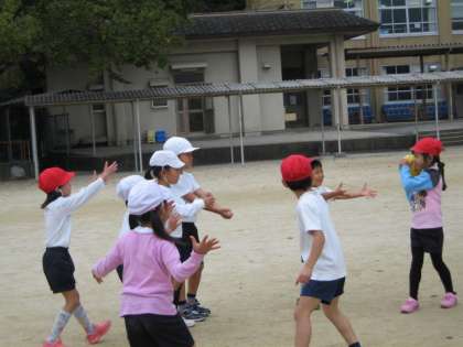 急に寒くなってきましたが,子ども達は元気に体育をしています。1組は鉄棒遊びでした。色々な技に挑戦していました。2組と3組は,パスゲームです。コート作りに時間がかかり,ゲームの時間が少なかったです。北風に負けず元気に活動していた子ども達です。