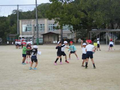3時間目の体育の時間,半分位過ぎた頃,急に雨が降ってきました。3クラスとも,大急ぎで後片づけをしました。パスゲームは,ゲームの最中だったので,とても残念がっていた子ども達でした。