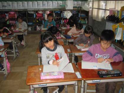 算数では,繰り下がりのひきざんに入りました。計算の説明のしかたを,練習しているところです。今日のステップタイムは,さっそく習ったばかりの計算に挑戦していました。