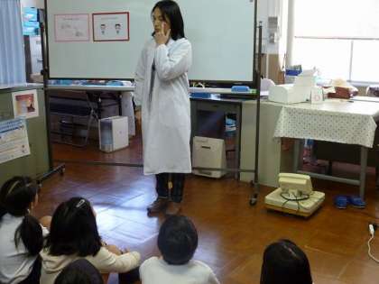 身体計測がありました。4月に比べてぐんぐん大きくなった2年生の子どもたち。今日は近藤先生に「目薬のさしかた」を教えていただきました。目薬のさしかたを丁寧に教えていただき,実際にさすふりをしながらやりました。1年生の時には「ぬり薬のぬり方」を教えていただきました。毎日の生活の中で生かしてほしいと思います。