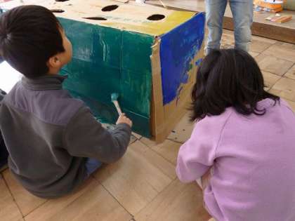 生活科では,おもちゃフェスティバルに向けて準備をしています。1年生に喜んでもらえるように,ルール説明やおもちゃを工夫しています。グループの中で協力をしないと,なかなか作業が進みませんが,子どもたちは上手に協力し合いながら進めています。1年生に喜んでもらえるように,みんなで頑張りたいと思います。