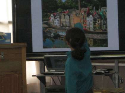 2週間ほどデンマークから冬休みを利用して1組に聴講生がきていました。最後の日,ゲストティーチャーとしてお父さんがオランダの国についてお話をしてくださいました。クイズ形式でわかりやすく話してくださいました。子ども達は日本と違う文化を身近に感じていました。いい機会をもつことができよかったです。