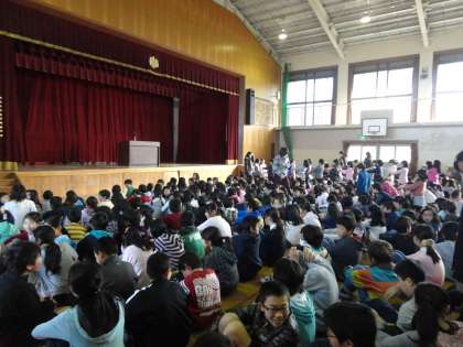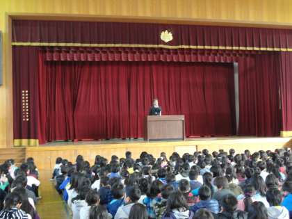 校長先生のお話しを、いろいろな学年の