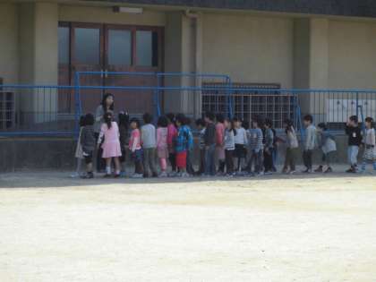 1年生のクラスでは,お知らせプリントの配り方を指導していました。(写真…中)