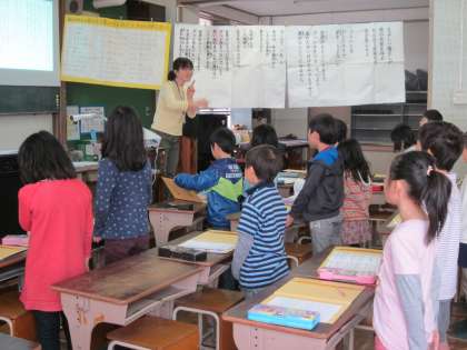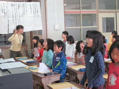 3年生からは,音楽専科の先生に音楽の授業をしてもらいます。声の出し方や歌う時の立ち方など,一つ一つ丁寧に教えてもらいました。