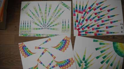カラフルな作品が仕上がりました。動きのある構成になるように考えました。