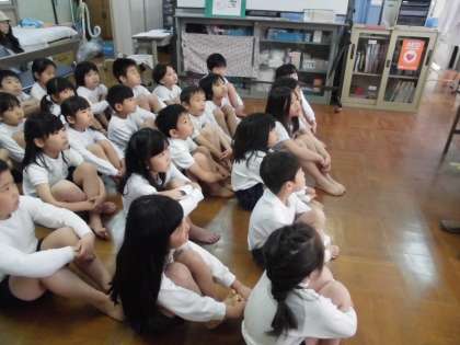新年度になって,いろいろな保健関係の検査が始まります。先日,身体計測がありました。まず近藤先生から「あ・い・う・べ体操」についてお話がありました。これは,歯並びが悪い人にはきれいな歯並びに直すのに有効な体操です。口の周りの筋肉をつけていきます。さっそくその練習方法を教えていただきました。朝の音読練習に取り入れていきたいと思います。静かに近藤先生の話を聞いていた子ども達でした。