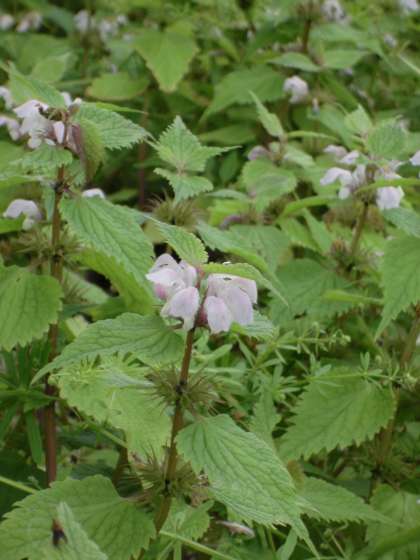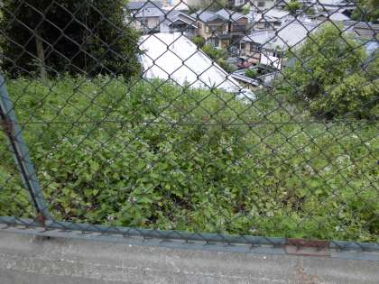 運動場の西側のフェンスの外に「オドリコソウ」がたくさん花を咲かせています。