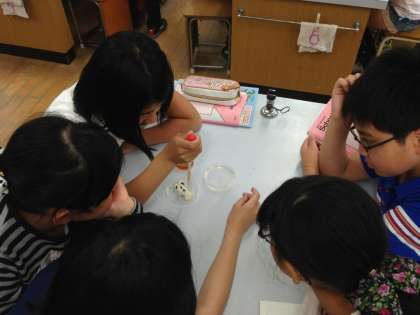 その後,インゲンマメの種子にもでんぷんが含まれてるのかを調べました。どの子も,一生懸命実験に取り組むことができていました。
