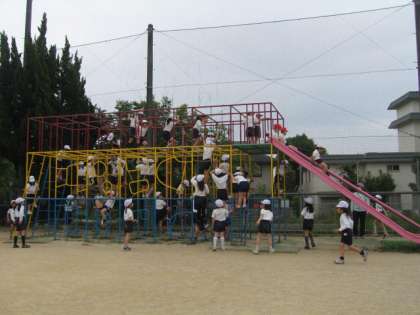 タイムをとった後,総合遊具で遊んだり,走る練習をしたりしていた子ども達です。