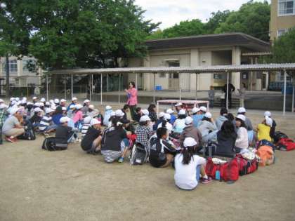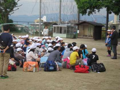 ただ今,6年生が修学旅行に出発しました。お天気が心配されましたが,今のところ雨も降らず出発式を運動場で行うことができました。楽しい2日間になることを願っています。