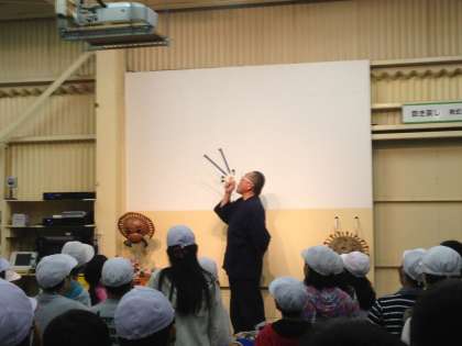 吹き戻しの里に到着しました。講師の先生に吹き戻しの歴史などを聞いた後は,自分たちで吹き戻しを作る体験をします。