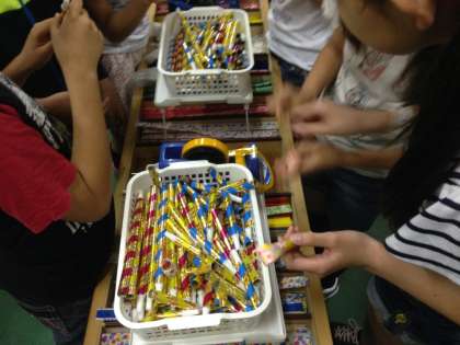 吹き戻しを作りました。いろいろな柄から6つ選んで,自分だけの吹き戻しを作ります。