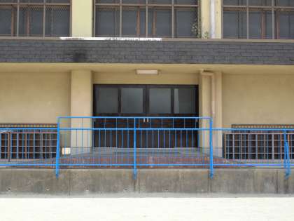 5月24日(土)好天です。休日ですが地域の会合があります。早めに職場に来て,会合の時刻までデスクワークは後回しにして,体育館運動場側の北側のドアのペンキ塗りを仕上げました。