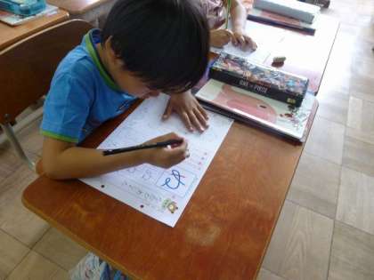 ひらがなの学習の様子です。ひらがなプリントをする時には,言葉集めをたくさんしています。数がだんだんと増えてきてました。みんなで見つけると楽しいです。楽しみながら学習をしていきたいと思います。