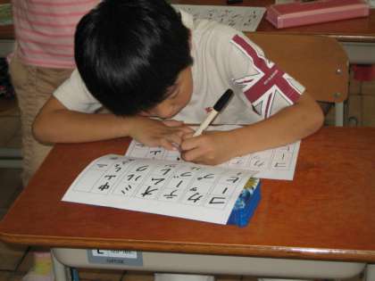 久しぶりのフェルトペンだったので,子ども達は緊張しながら一文字ずつ丁寧に書いていました。それに,カタカナばかりなので,書きづらそうでした。