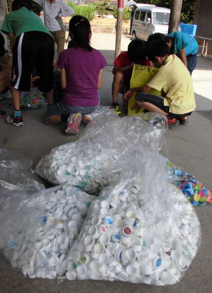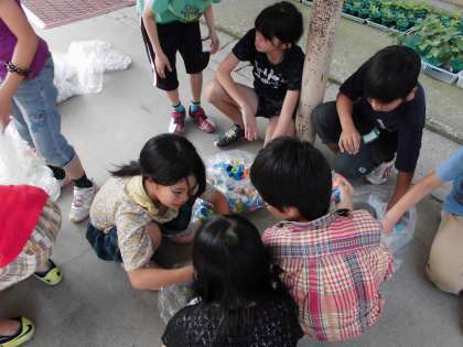 環境委員会では、エコ活動に取り組んでいます。今回の活動では、エコキャップ活動で集まったペットボトルキャップの計量と分別を行いました。キャップについているシールをはがしたり、白色と有色のものにわけたりしました。そのほかに、グリーンカーテンを育てる活動も行っています。毎日当番制で水やりをし、大切に育てています。5月に苗を植え、ずいぶん育ちました。これからもみんなで協力して地球にやさしいエコな取り組みを、環境委員会から広げていきたいですね。