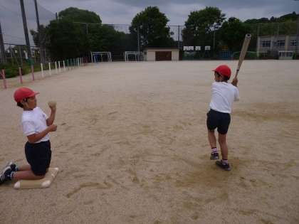 ソフトボール部では,毎週火曜日に練習をしています。キャッチボールや素振り,ゴロを受けたり,バッティングをしたりと体をたくさん動かしながら活動しています。回数を重ねるごとに,だんだんと上手になってきています。安全に気をつけながら,みんなで楽しみながら活動していきたいと思います。