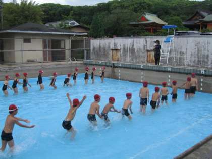 二回目の水遊びがありました。曇り空で少し水が冷たかったですが,子ども達は元気よくプールに入りました。まだ低水位だったので,わにさん歩きやカニ歩き・あひるさんになって歩きました。伏し浮きはするのですが,もう少し水位が上がるほうが動きやすいですね。来週も体調を整えて水遊びをしましょう。