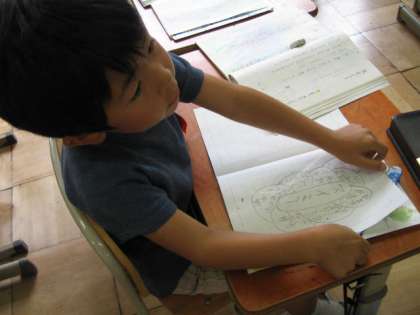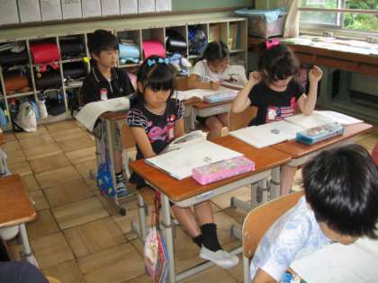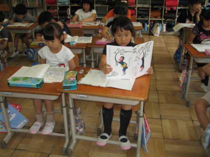 国語の授業では,「スイミー」の学習に入りました。今日は,「スイミー」という名前からどんなことを連想するかを考えました。「スイスイ泳ぐからスイミーってついたと思うよ。」「きっと鬼ごっこをしたら,だれもタッチできないくらい速いと思います。」「すごくやさしいと思うなあ。」などと次々意見が出てきました。子ども達は,たくさんたくさん想像して,「スイミー」を身近かに感じてくれたようです。