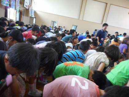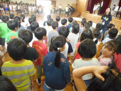 2時間目に体育館で6月のつどいがありました。1年生にとって初めてのことで,少し緊張もしていましたが,呉竹総合支援学校の友達を迎え,一生懸命歌を歌ったり踊ったりしました。