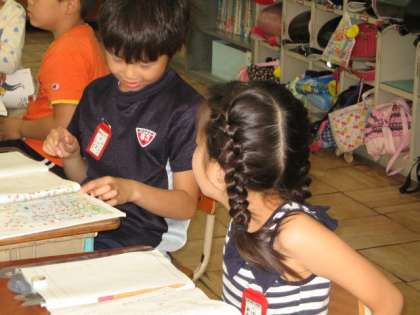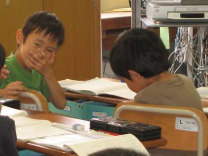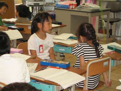 国語では,話し合い活動に取り組んでいます。1年生から取り組んでいるので,ずいぶん自分の気持ちを伝えられるようになりました。今日は,スイミーが兄弟たちとなかよく暮らしている様子について話し合いました。想像豊かな意見がでてきました。「わかめで綱引きをしながらなかよく遊んでいると思います。」「こんぶやわかめの林を探検しているのじゃないかと思います。」「おにごっこをして遊んでいると思います。」など色々な発表をしてくれました。兄弟が本当になかよく遊んでいたのでしょうね!