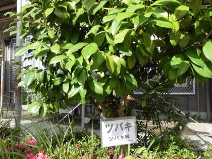 運動場の東側(本館の西側)にツバキの木があります。