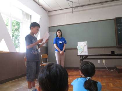 大阪ガスより,ゲストティーチャーをお招きし,地球温暖化についてのお話をしていただきました。人間の排出する二酸化炭素が,地球温暖化の原因になっています。排出している二酸化炭素を減らすため,身近なことから取り組んでいきたいです。