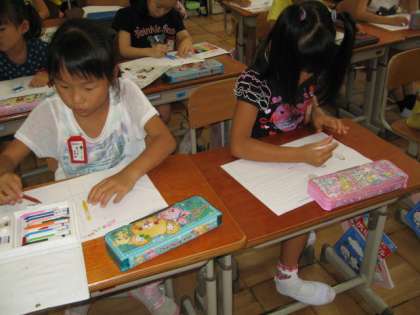 図工の時間に,来週制作する工作のアイデア図を考えました。ストローを組み合わせて動く仕組みを作ります。それを動かして何に見えるか考えました。色々なアイデアが出てきました。子ども達は,早く作りたがっています。来週の学校公開日に予定しています。子ども達のアイデアあふれる作品をぜひみてください。