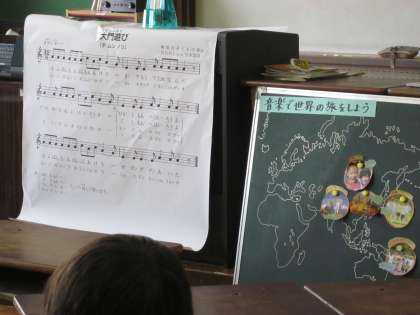 3年生では,今,音楽で「歌で世界のたびをしよう」という学習をしています。アジアの様々な国の音楽を聴いて感想を話し合っています。