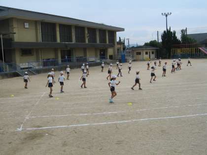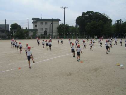 団体演技(ダンス)の練習は,運動場で隊形を変わる練習をしました。初めは戸惑っていた子ども達でしたが,さすが2年生!すぐに理解して上手に移動できるようになってきました。次は,新しい曲を覚えましょう。
