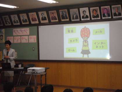 ケータイの使い方について、KDDIから講師の方に来ていただき授業をしていただきました。