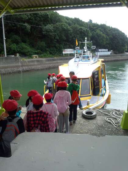 10月8日午前11時頃,子ども達の乗ったバスが,ほぼ予定通りに賢島に到着しました。ここで船に乗り換えます。バスと同様に2せきの船に分かれて英虞湾を進みました。
